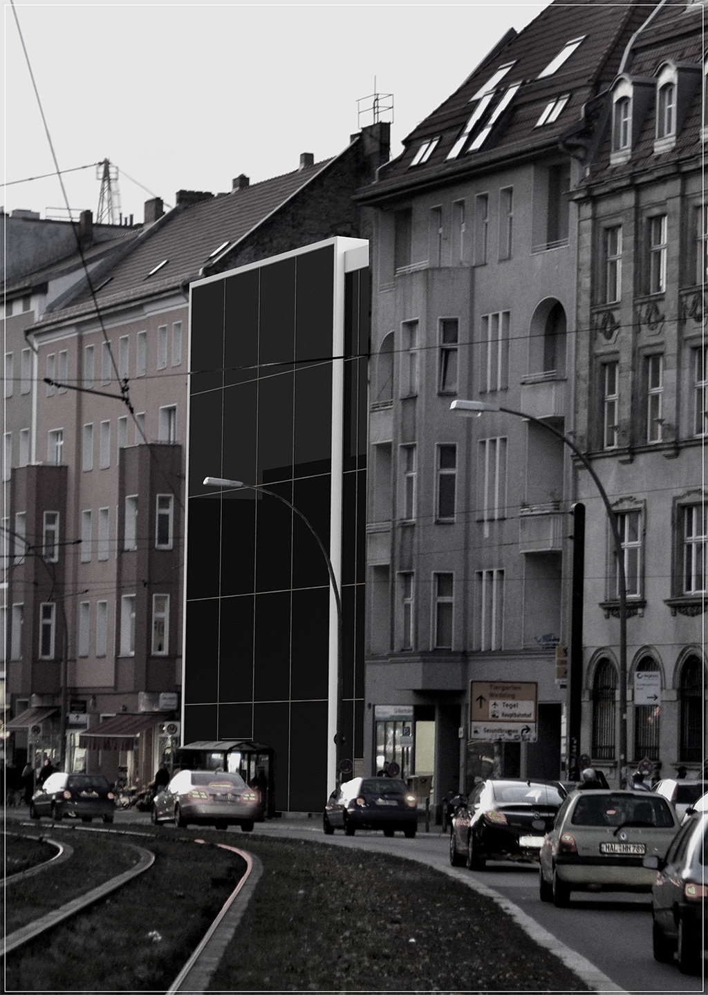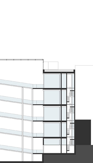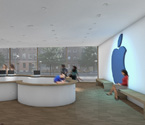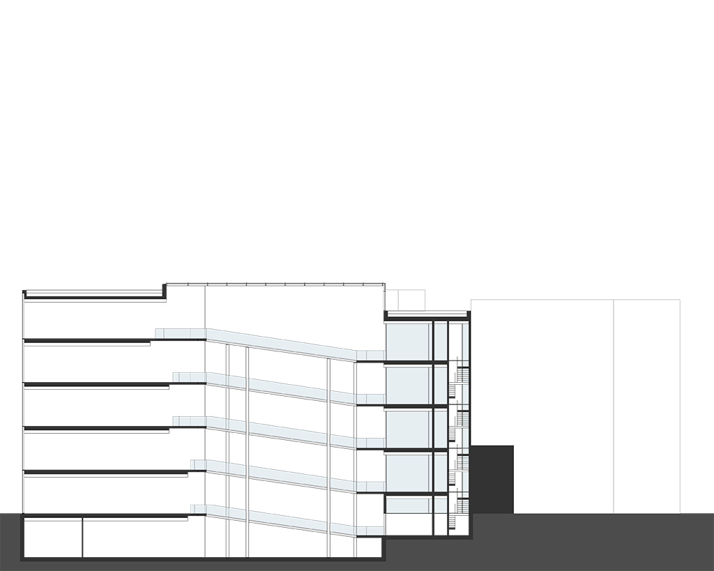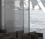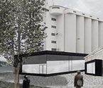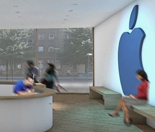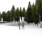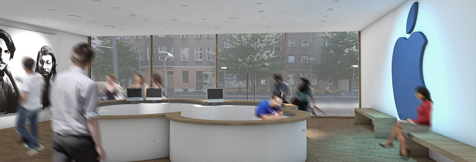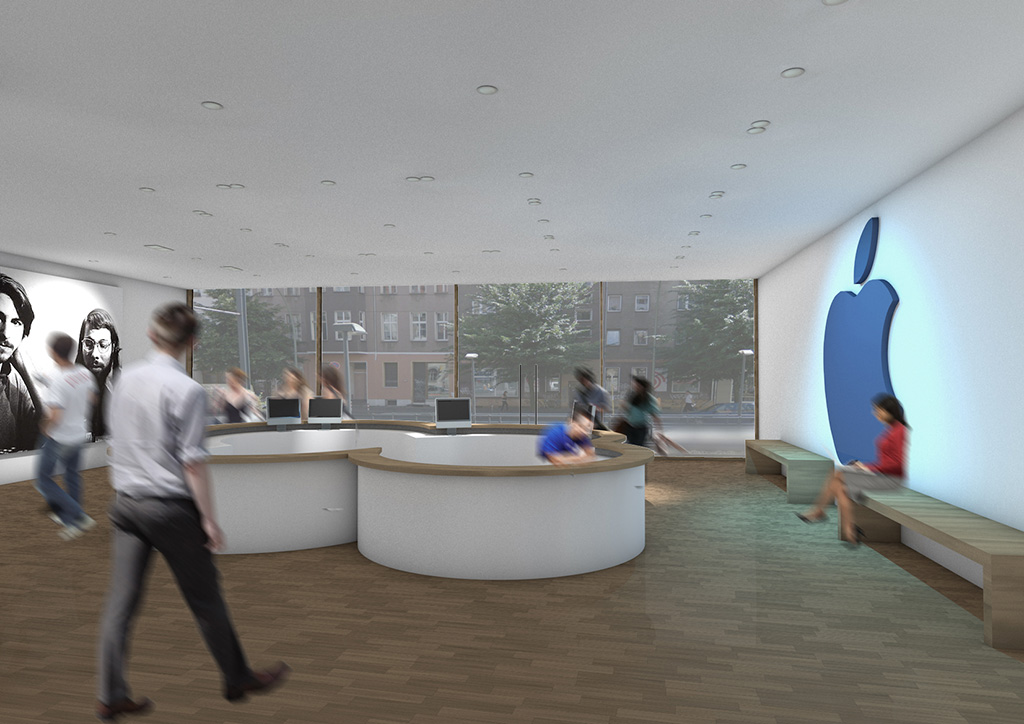 Ähnlich wie beim Spross entwickeln sich auch hier die verschiedenen Ebenen um einen "Stamm" nach links und rechts. Der Stamm ist in diesem Entwurfs das Erschließungselement - eine Rampemanlage, die die Nutzer zu den verschiedenen Ebenen begibt. Auf den Ebenen selbst findet der Besucher multimediale Informationen zur Entwicklung Medien Technik speziell der von Apple.