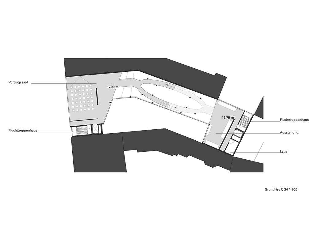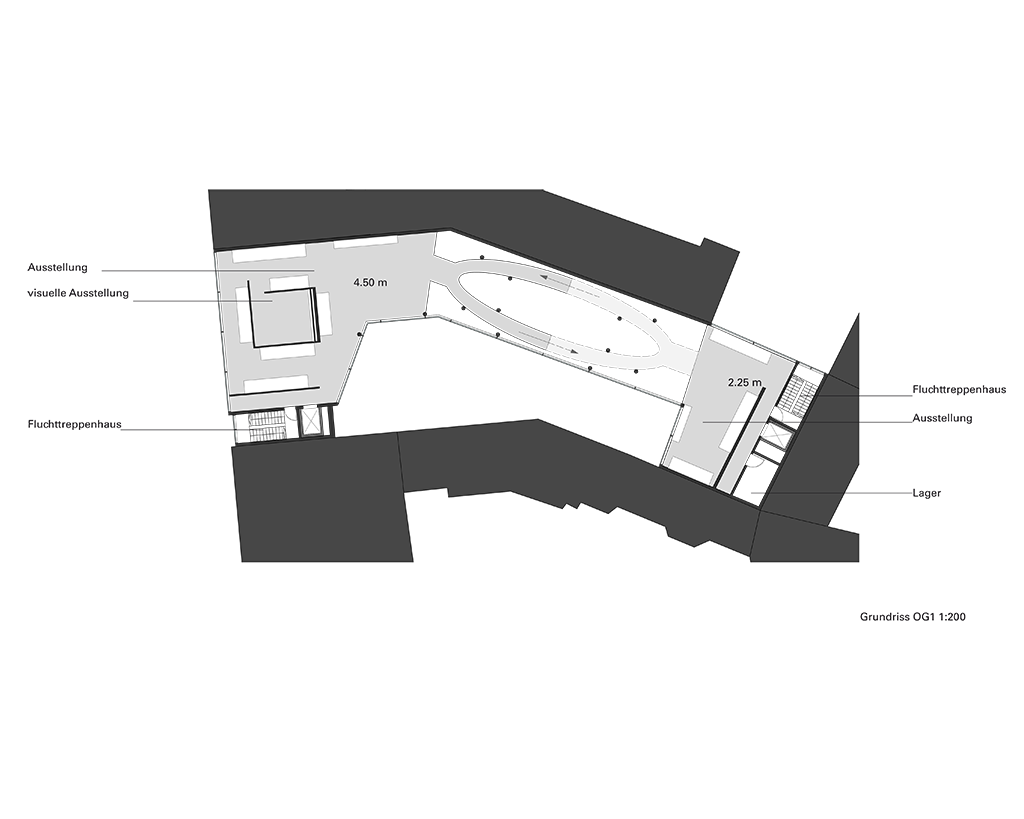Im Kern jedes Ausstellungsgeschoss gibt es einen Kern, wo die Themen speziallisiert wiedergegeben werden.