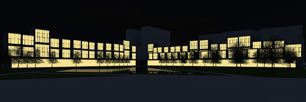 Im zweiten Schritt sollte die beiden Cubes dann am Campus Nord in Barcelona platziert und vervielfältigt werden. Besonderer Aufmerksamkeit war hier dem Platz in der Mitte des Grundstücks zuzuordnen. Unterhalb des Platzes befinden sich Wasserspeicher und somit fiel eine Bebauung darüber aus. Was über blieb waren jeweils ein Streifen im Norden sowie Westen.Die Cubes wurden gestapelt und verrückt um durch Rücksprünge Nischen und "Privaträume" zu schaffen.
